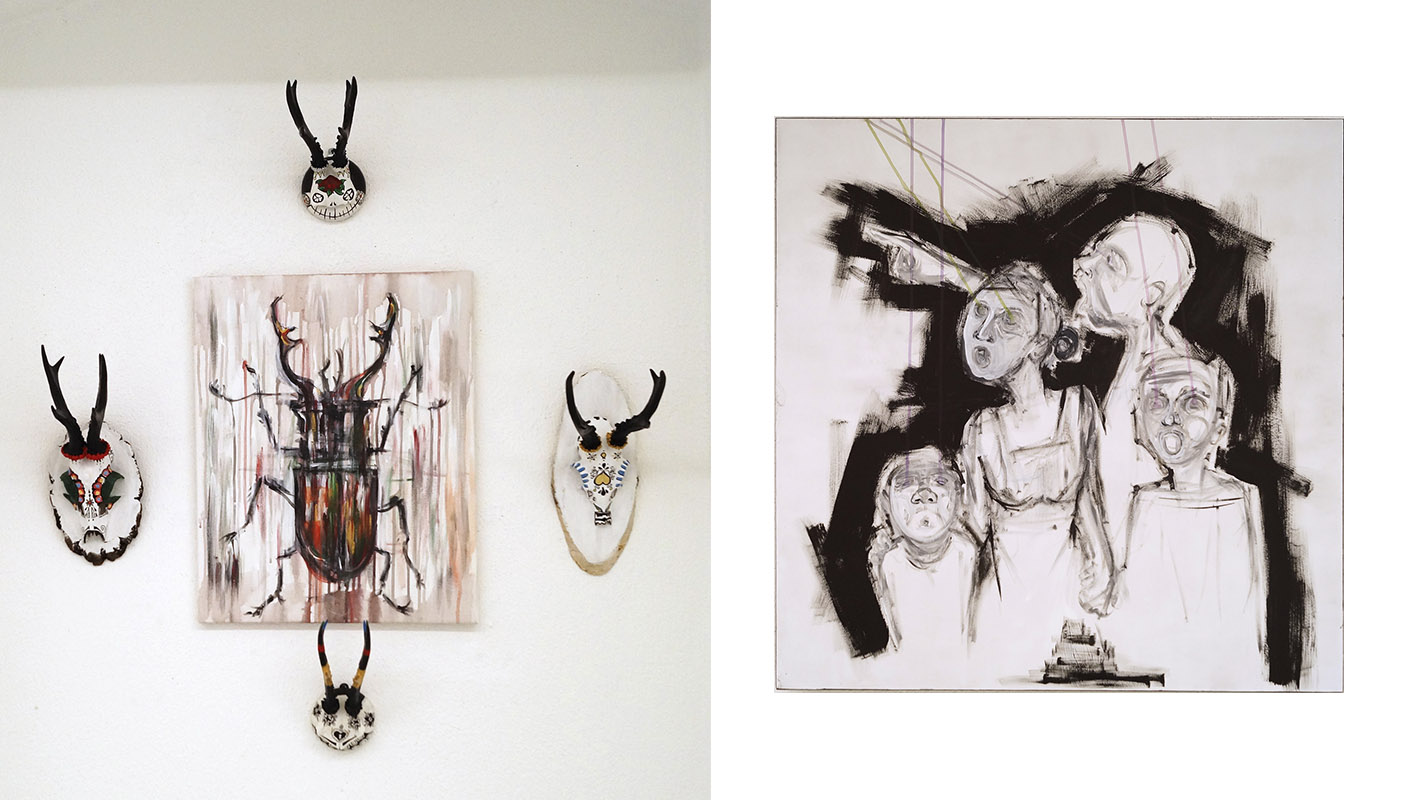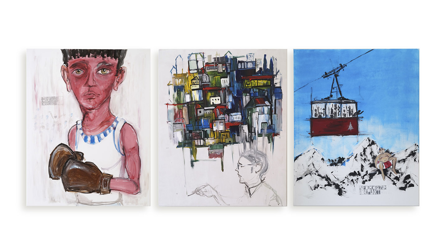 Der Huber Hubert ist ein cooler Hund, mehrfacher Kunstpreisträger und Galeriebetreiber der Produzentengalerie Passau. Und war im November 2017 an meinem Telefon: „Mach halt bei uns a Ausstellung.“ „Ja aber Hubert, was soll i denn ausstellen?“ „Ja, stell di halt ned so an. An Stuhl. Oder a Gedicht. Oder halt Bilder.“ „Ok, Hubert, ich mach’s.“ So waren letztlich psycho-physische Entstehungen aus analogen Substanzen zu sehen. Frei nach dem nicht existierenden Psychografiker Sehfried Denkwart: „Ich gäb’ viel, könnt ich sehen, welch Gebilde im Hirn entstehen.“ Ausstellung »Hirrnwirrn«, in Passau und München.